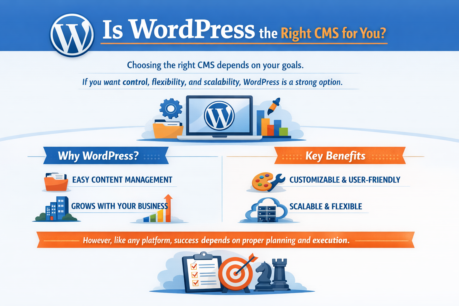 Choosing the right CMS depends on your goals. If you want control, flexibility, and scalability, WordPress is a strong option.